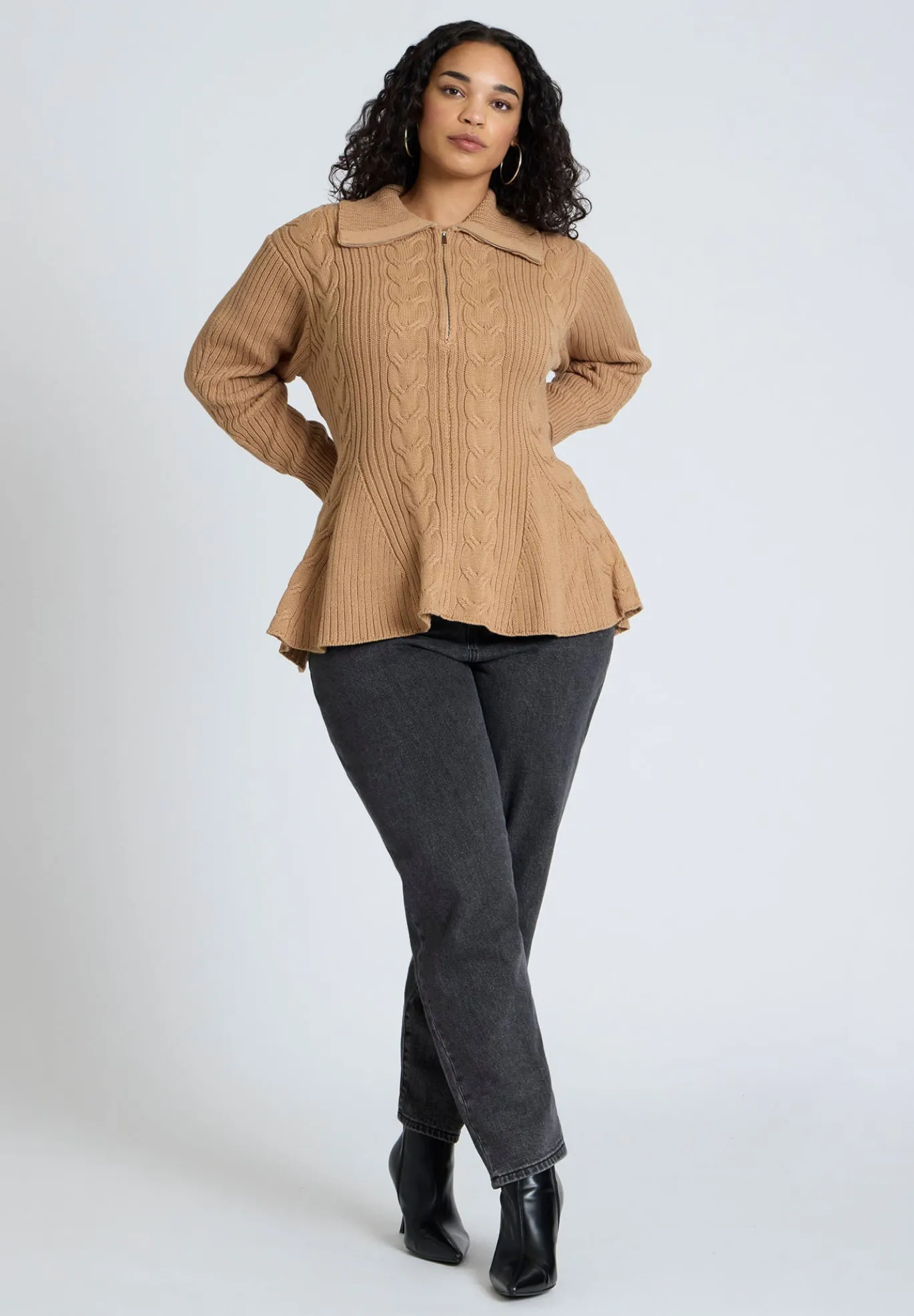- Rib fold over collar, front zipper