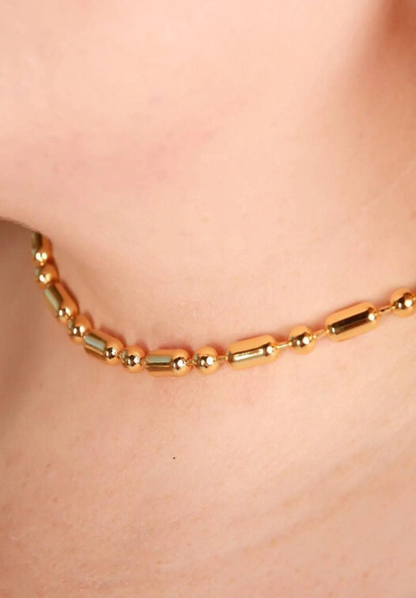 Polished ball chain necklace with sleek capsule links. A modern twist on a classic design.