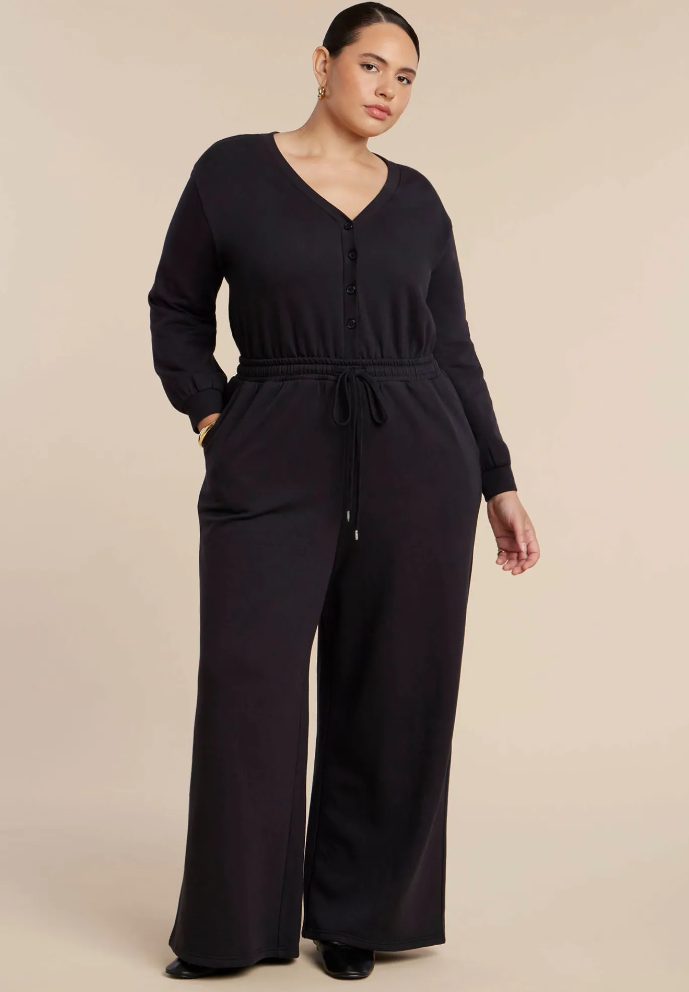 Button Up Long Sleeve Jumpsuit
