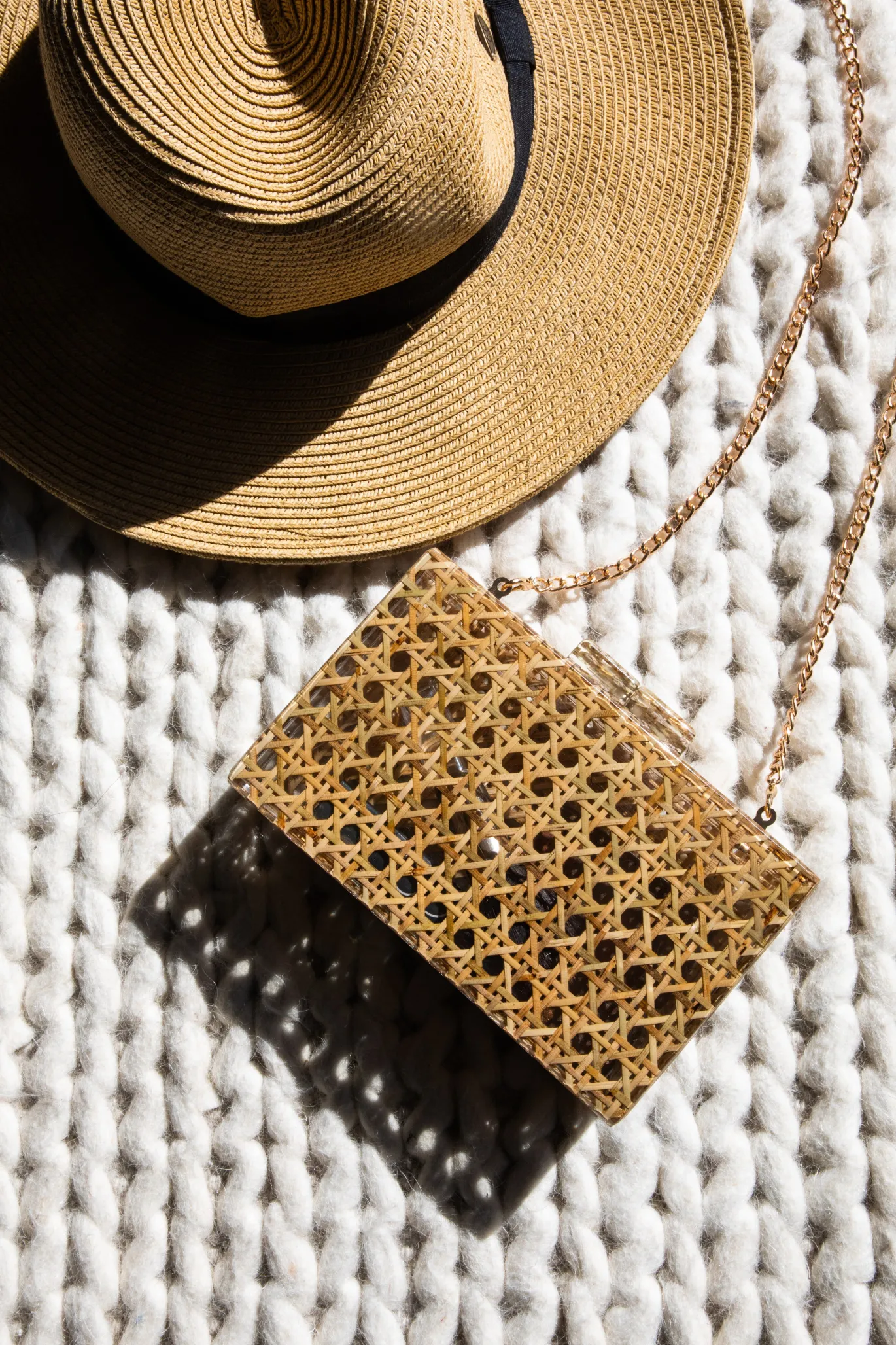 Elevate your accessory game with the Cane Rattan Handbag, a perfect fusion of contemporary style and timeless sophistication. Expertly crafted from high-quality acrylic, this handbag offers a unique and durable design that stands out in any crowd. The vibrant colored cane accents add a touch of playful elegance, making it a versatile choice for any occasion. Whether you’re attending a special event, heading out for a night on the town, or looking to add a splash of color to your everyday wardrobe, this handbag is the ultimate choice. Embrace fashion-forward elegance with the Cane Rattan Handbag and enjoy a blend of innovation and classic charm. Its spacious interior comfortably accommodates your essentials, including your smartphone, keys, and makeup, while maintaining a sleek, compact profile. The secure clasp closure ensures your belongings stay safe while you’re on the move.