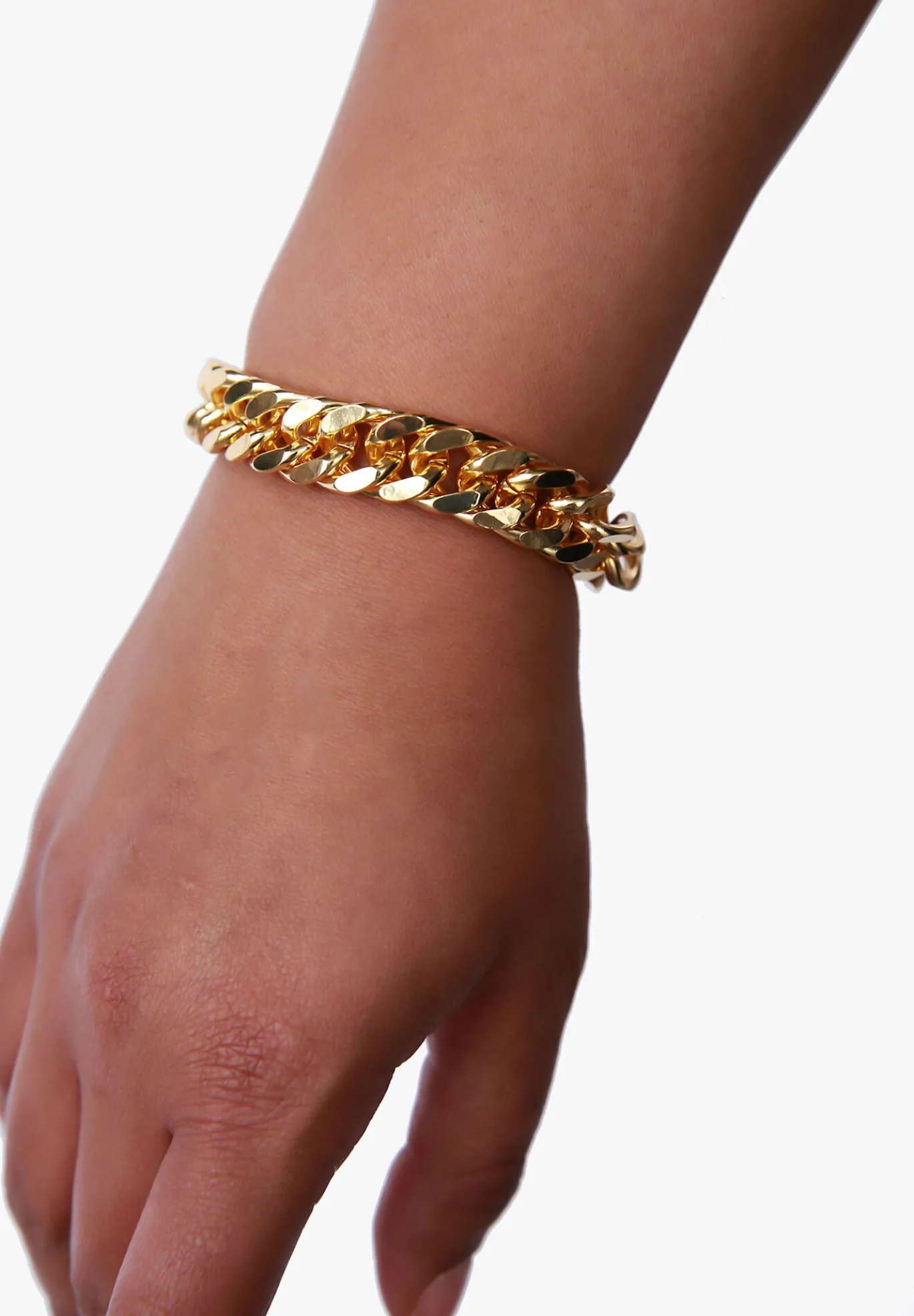 The Charlie bracelet brings the bold with its chunky double curb design and a statement clasp that catches the eye. A staple piece for any wrist that speaks style. Comes in both gold and silver.