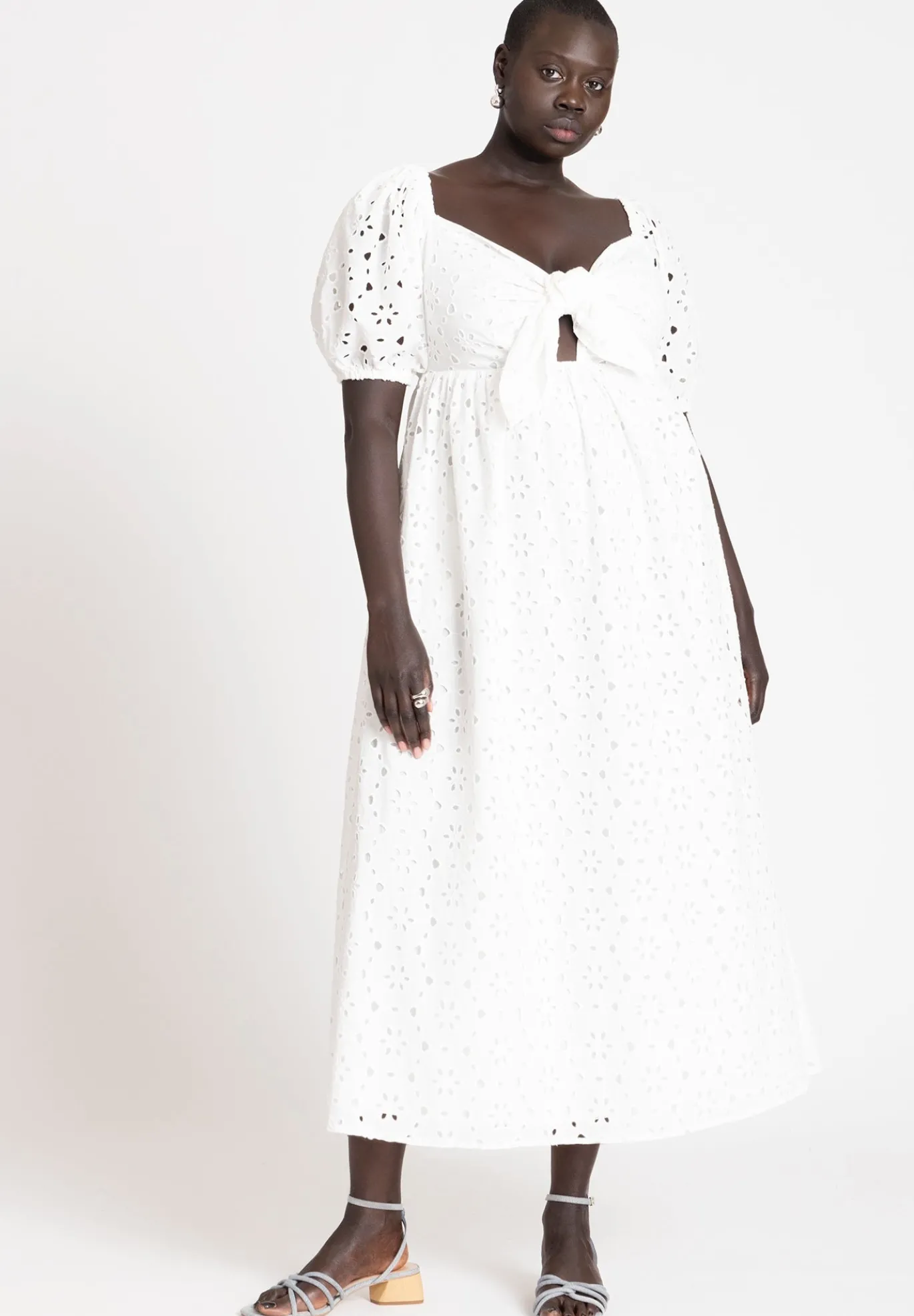 Eyelet tie front full skirt maxi dress