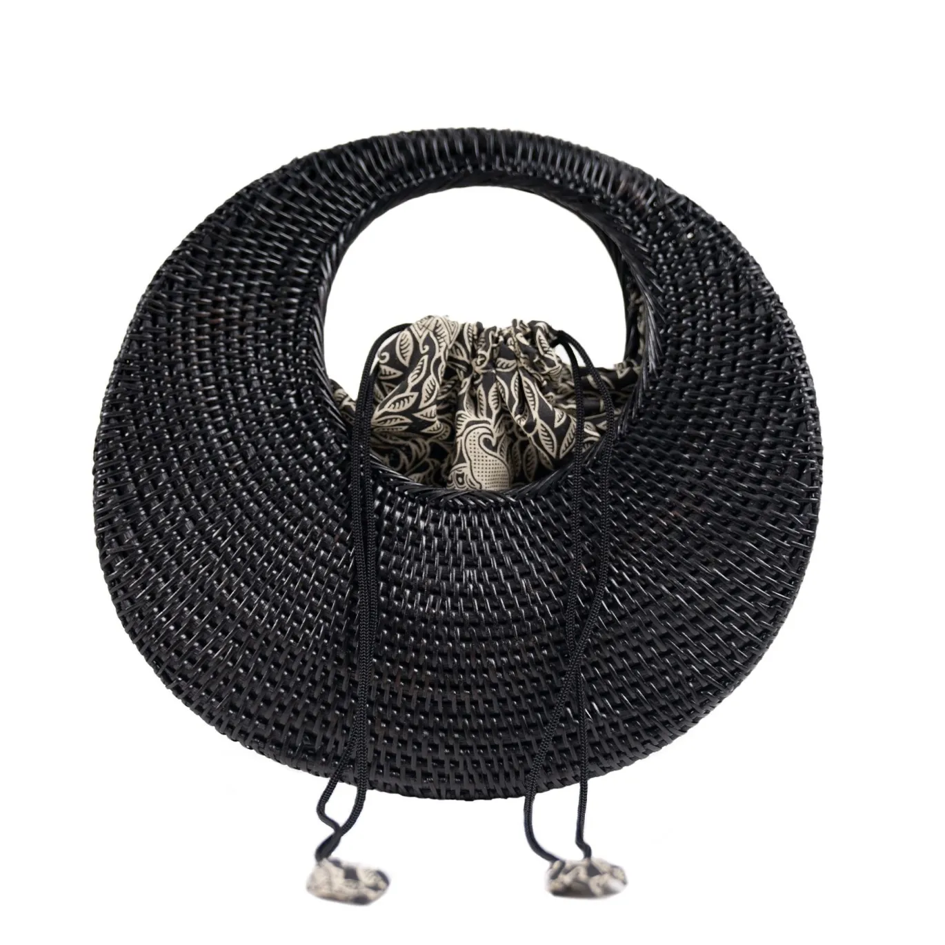 Introducing the “Felicity” Moon-shaped Rattan Purse — where nature-inspired elegance meets modern style. Crafted with intricate rattan weaving and accented by smooth vegan leather, its crescent design embodies a harmonious fusion of rustic charm and contemporary flair. Elevate your look with the enchanting allure of the “Felicity” bag, where sophistication and nature’s beauty unite in every curve.