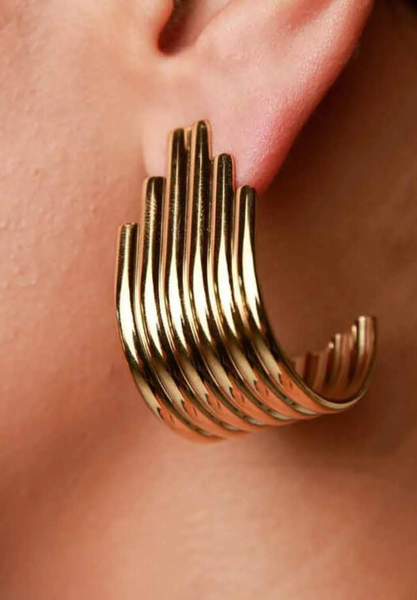 Ribbed hoop earrings with a layered, sculptural design. Effortlessly chic and timeless.