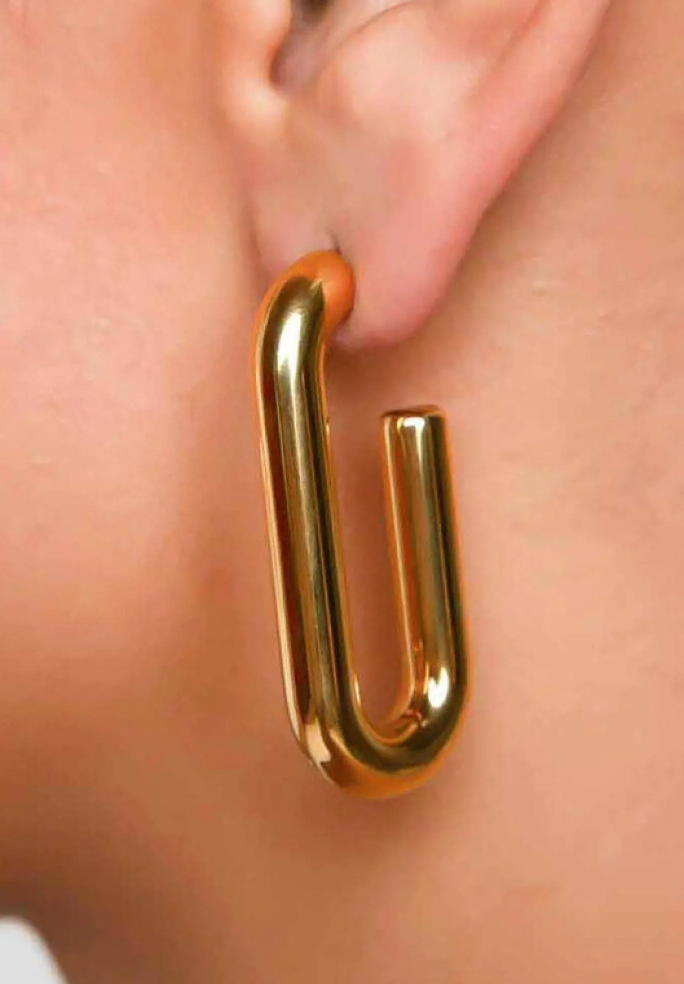 Sleek U-shaped hoops with a modern, sculptural silhouette. Minimalist with maximum impact.