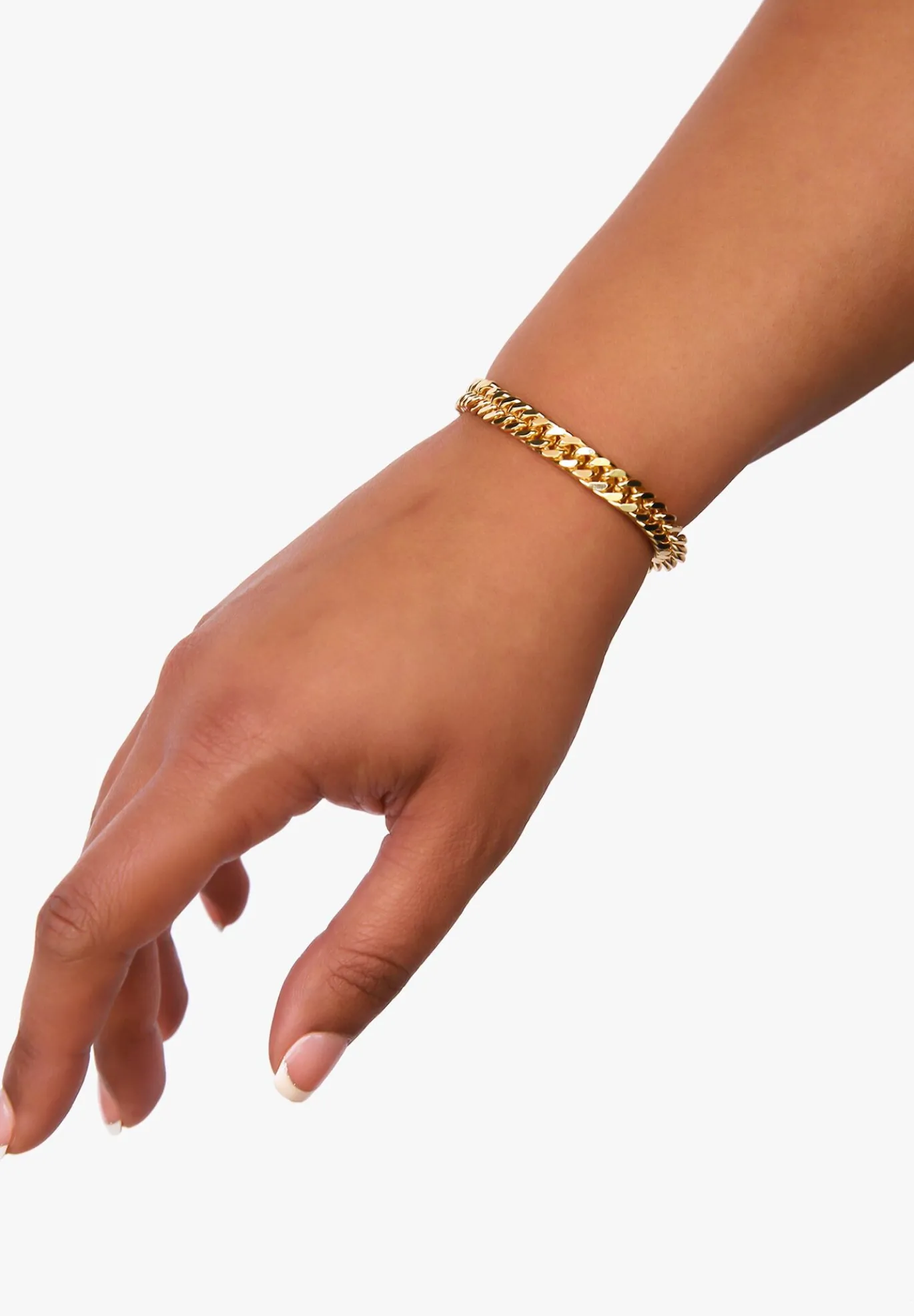 The Molly Bracelet features a Gold Filled Double Curb Chain, adding a glamorous touch to any outfit. Bold yet versatile, it’s designed to make you feel effortlessly powerful. Wear it solo for a subtle impact or layer it to create a look that’s distinctly yours. Comes in both gold and silver.