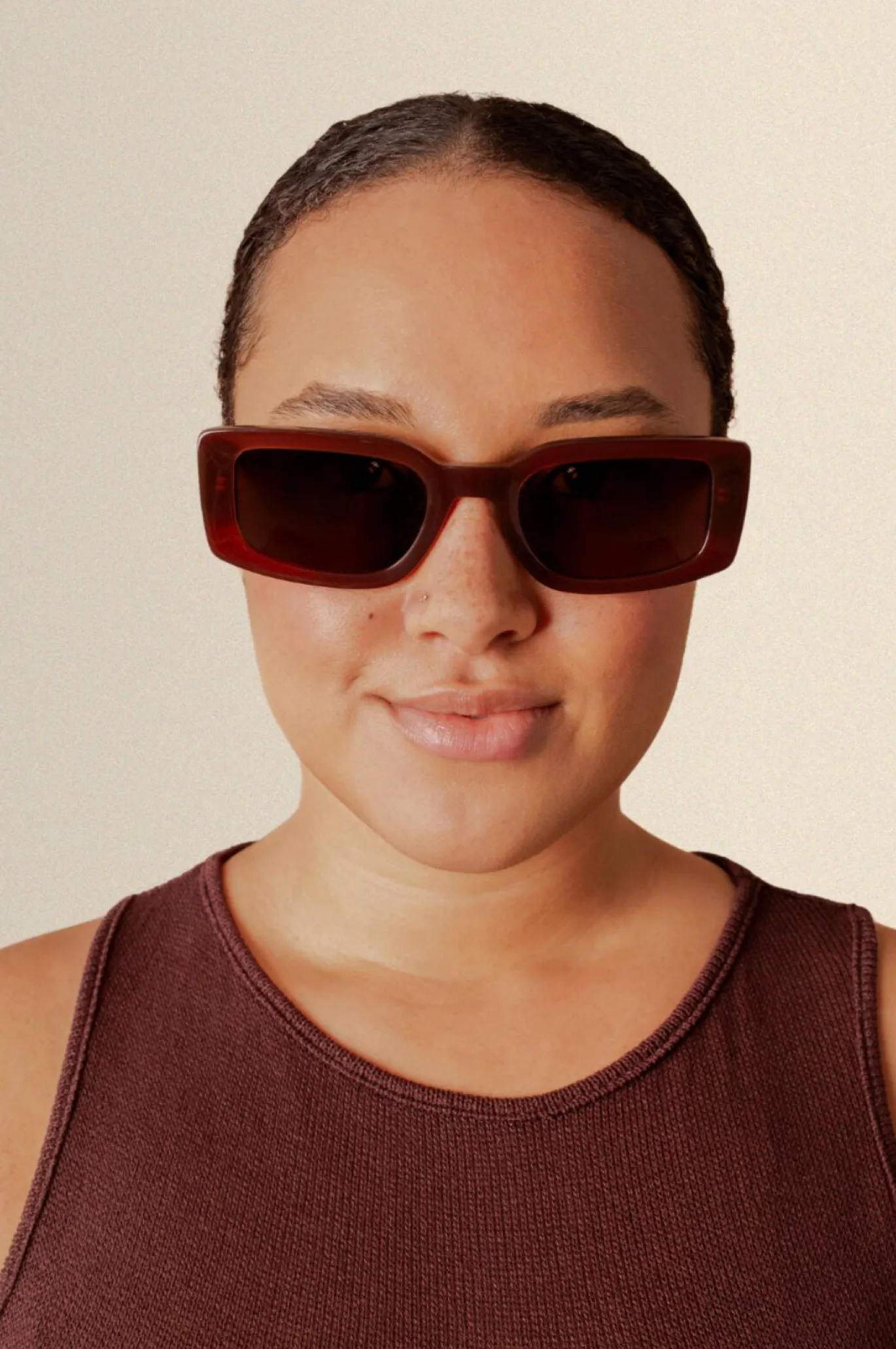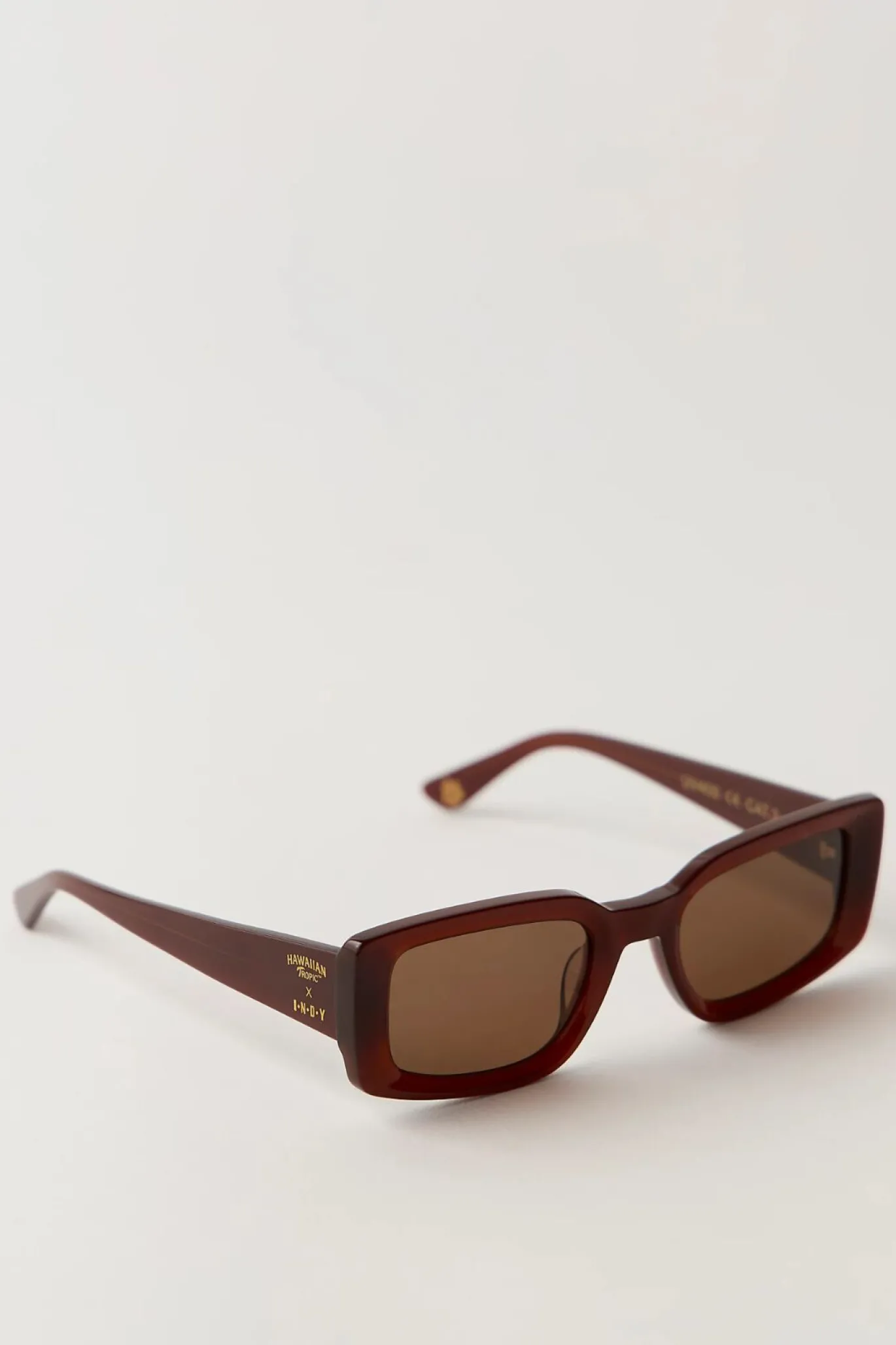 Our new rectangular Palm frame comes in a rich, sun-kissed brown, inspired by the brand’s iconic Dark Tanning Oil. Featuring polarized lenses for enhanced clarity and a sleek, timeless design that suits all face shapes. Perfect for any sunny vibe.