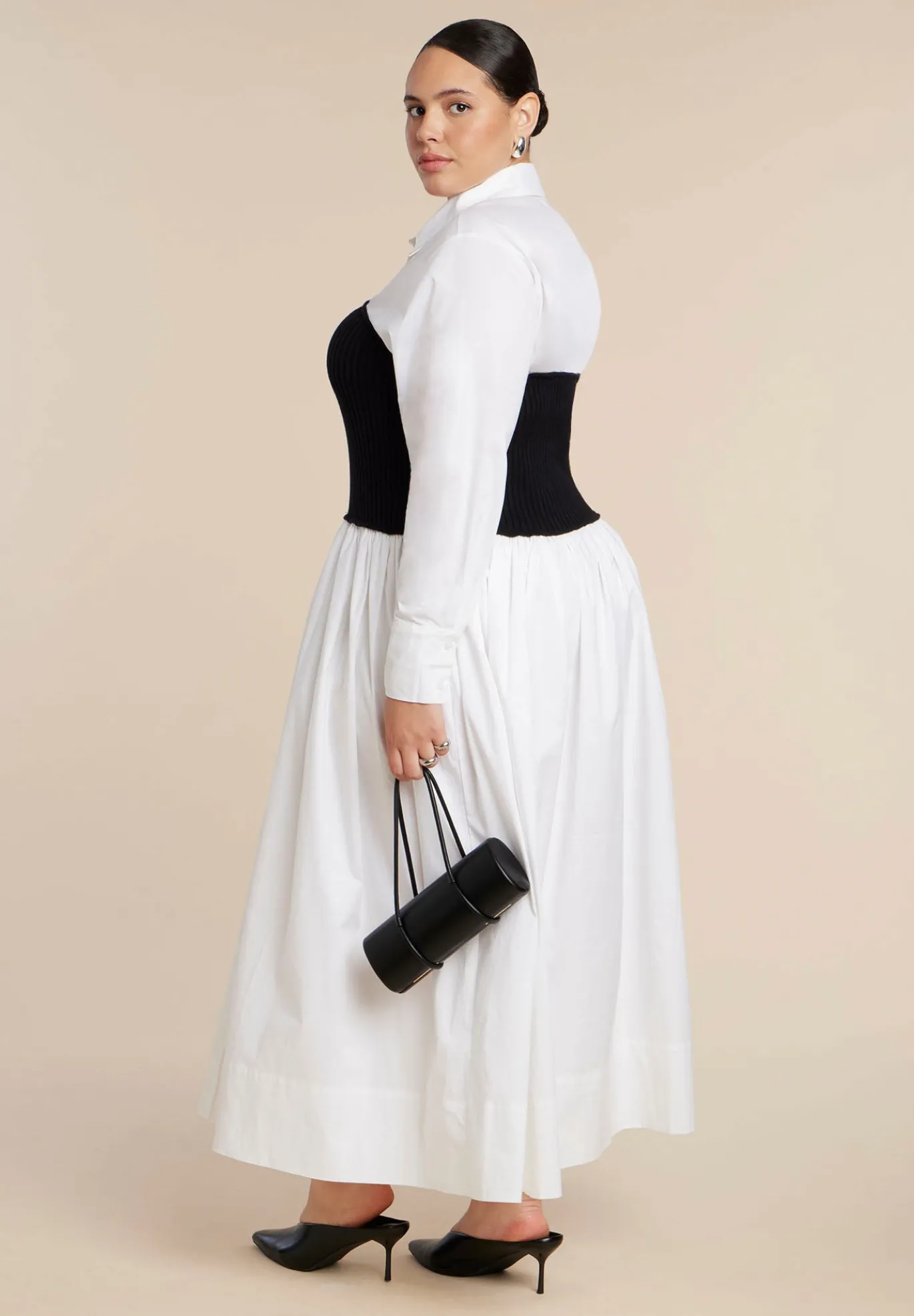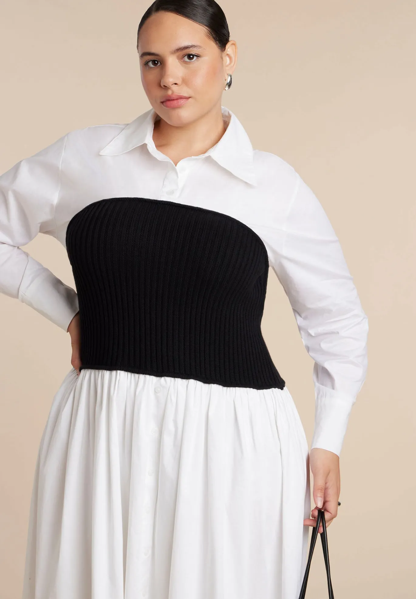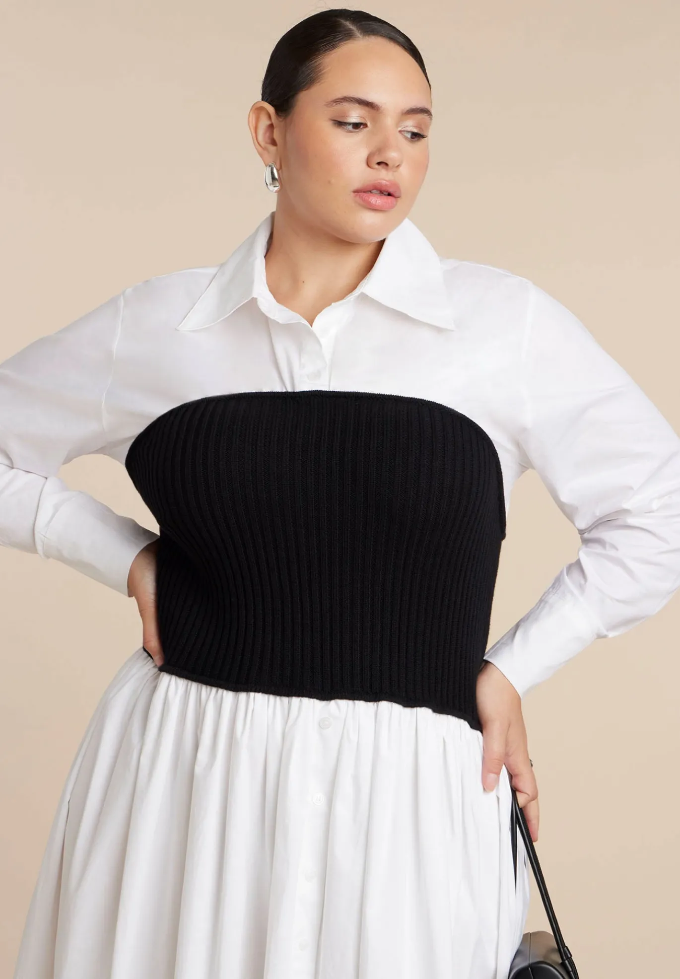 - Non-stretch woven cotton poplin, stretch sweater yarn