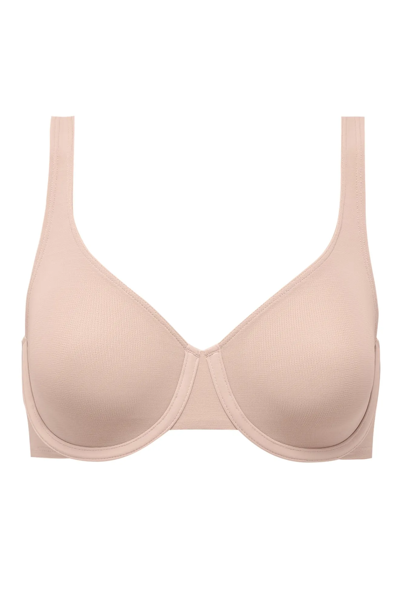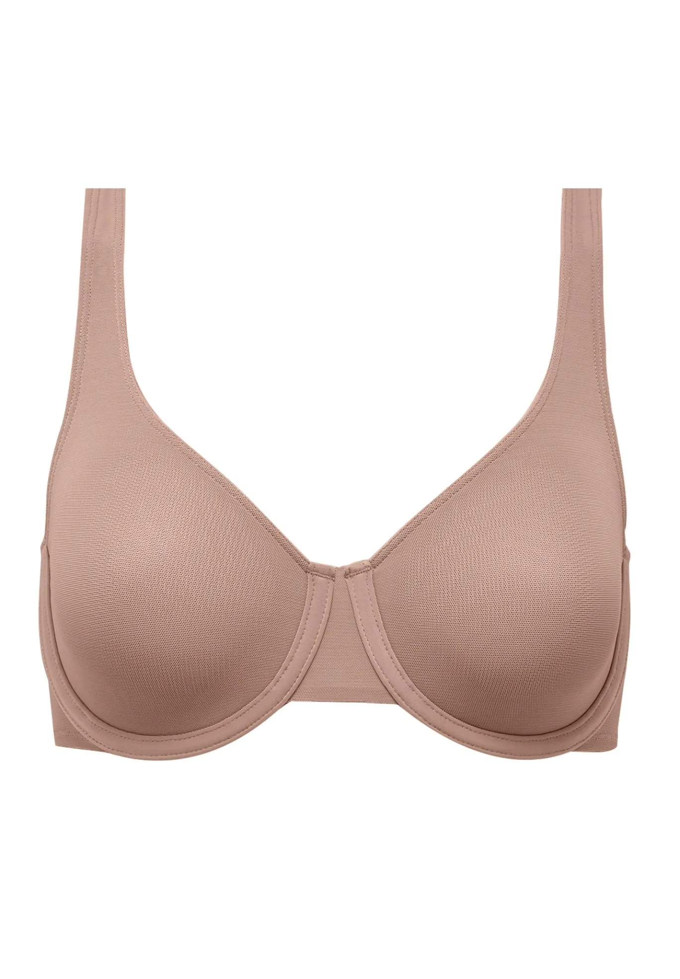 - Double-layer, unlined mesh cups are sewn, not bonded, providing semi-opaque nipple coverage