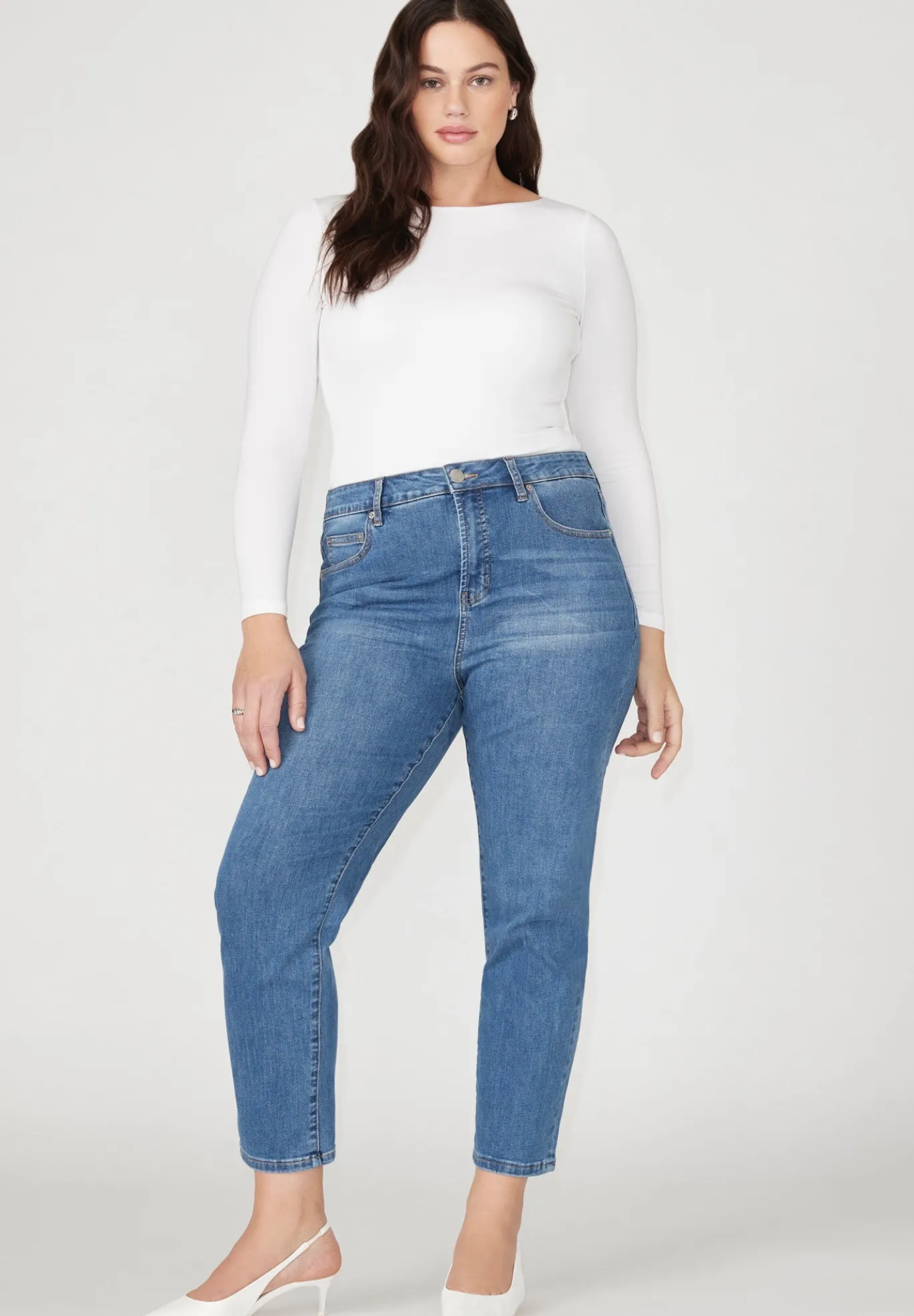 The Leigh Super Stretch Slim Leg Jean features the Comfort Control Pocket, our newest technical design feature that offers the ultimate smoothing technology for an added layer of comfort and control. These internal pockets offer that extra layer of reinforcement for all-day tummy control.